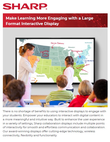 Sharp AQUOS BOARD® interactive display systems are ideal for education environments, and virtually anywhere presentations are a key component of sharing information. Elementary Schools, Middle Schools, High Schools, Colleges, and Universities can benefit from the advanced technology that the AQUOS BOARD display offers. The interactive and collaborative features of the product provide a true “hands-on” learning experience.